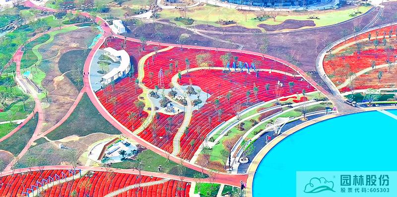 位于項目中心的天空花湖占地面積約27萬平方米,以水環(huán)、外環(huán)及花瓣環(huán)作為構(gòu)成花海的主要結(jié)構(gòu)體系,溪水環(huán)繞花海外圍形成花溪景觀。水環(huán):即天空之鏡,由一片圓形淺水水面作為花海的核心區(qū)域,天水一色,行人在其上猶如在大型的鏡面游走。花瓣環(huán):作為花海的主要元素“花瓣”,以有“英雄花”之稱的火星花作為主要片植品種,同時采用多種觀賞性花卉,如紫絨鼠尾草、矮生馬鞭草、郁金香、三角梅、粉黛亂子草等花帶打造充滿活力的花海景觀。外環(huán):圍繞“飄落的花瓣”設(shè)計主題甄選花卉品種,采用相同花期的紅粉色為主的多年生花卉片植方式,渲染烘托中心花海的熱烈氣氛,以綠色草坪作為襯托花海的底色,引導(dǎo)游人近距離打卡觀賞。